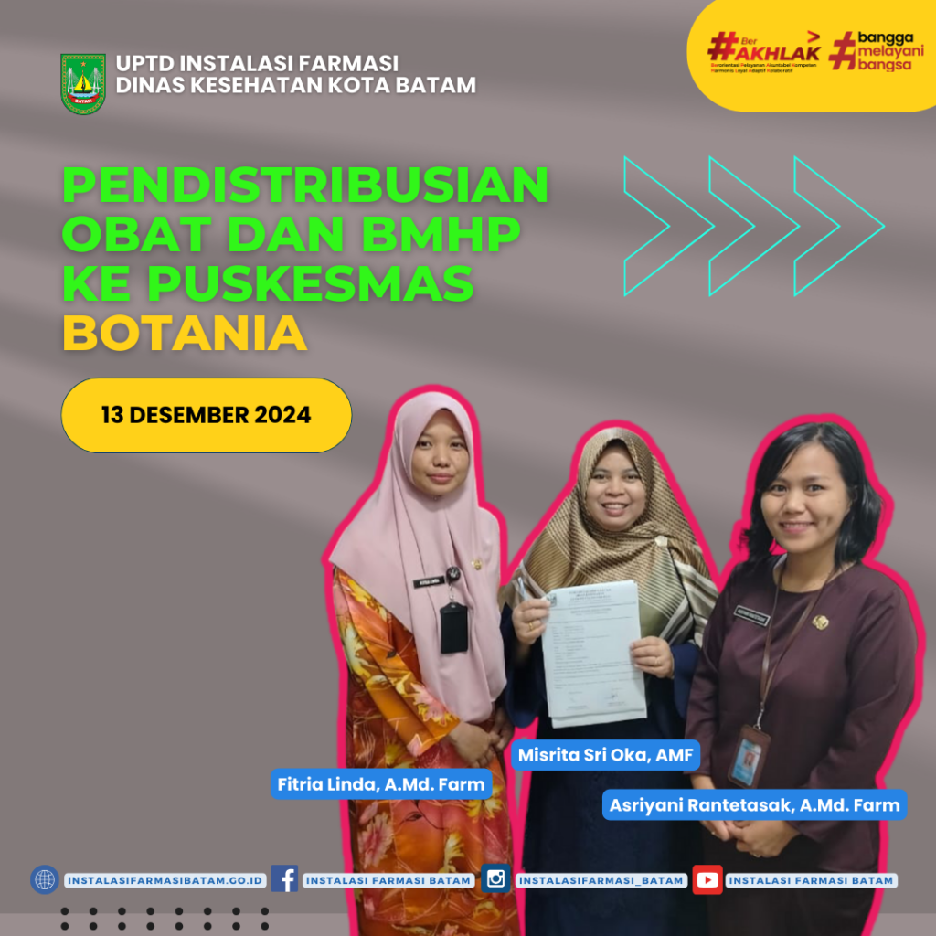 PENDISTRIBUSIAN OBAT DAN BMHP KE PUSKESMAS BOTANIA, 13 DESEMBER 2024 1 tahun ago instalasifarmasi07 Post Views: 1 Continue Reading Previous PENDISTRIBUSIAN OBAT DAN BMHP KE PUSKESMAS TG. UNCANG, 13 DESEMBER 2024Next STOP Penyalahgunaan Obat-Obat Tertentu.