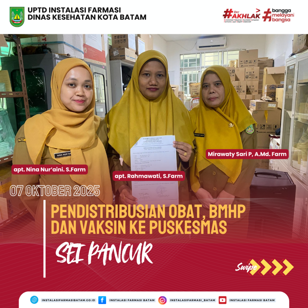 UPTD Instalasi Farmasi Dinas Kesehatan Kota Batam melakukan Pendistribusian Obat, Bahan Medis Habis Pakai (BMHP) dan Vaksin rutin ke Puskesmas Sei Pancur pada Selasa, 07 Oktober 2025
