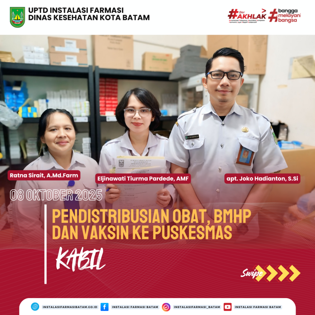 UPTD Instalasi Farmasi Dinas Kesehatan Kota Batam melakukan Pendistribusian Obat, Bahan Medis Habis Pakai (BMHP) dan Vaksin rutin ke Puskesmas Kabil pada Rabu, 08 Oktober 2025