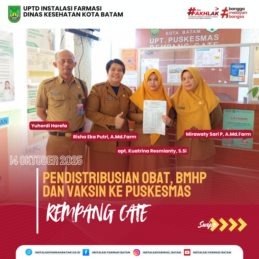 UPTD Instalasi Farmasi Dinas Kesehatan Kota Batam melakukan Pendistribusian Obat, Bahan Medis Habis Pakai (BMHP) dan Vaksin rutin ke Puskesmas Rempang Cate pada Selasa, 14 Oktober 2025