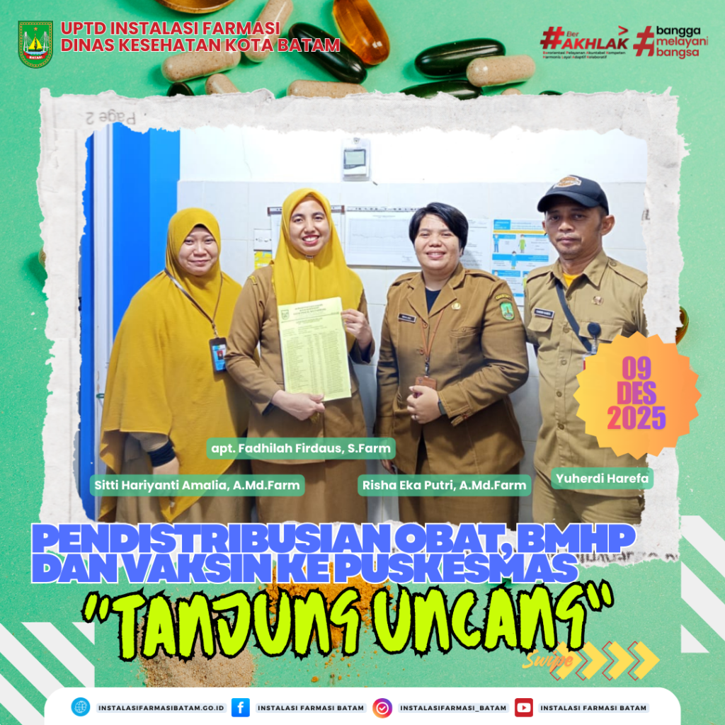 UPTD Instalasi Farmasi Dinas Kesehatan Kota Batam melakukan Pendistribusian Obat, Bahan Medis Habis Pakai (BMHP) dan Vaksin rutin ke Puskesmas Tanjung Uncang pada Selasa, 09 Desember 2025