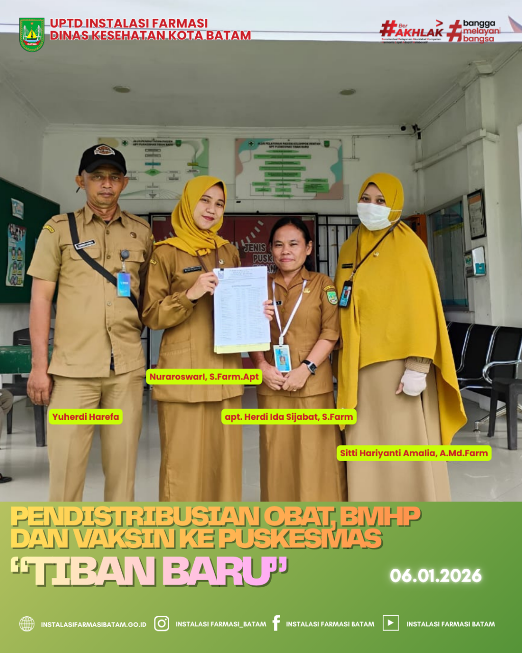 UPTD Instalasi Farmasi Dinas Kesehatan Kota Batam melakukan Pendistribusian Obat, Bahan Medis Habis Pakai (BMHP) dan Vaksin rutin ke Puskesmas Tiban Baru pada Selasa, 06 Januari 2026