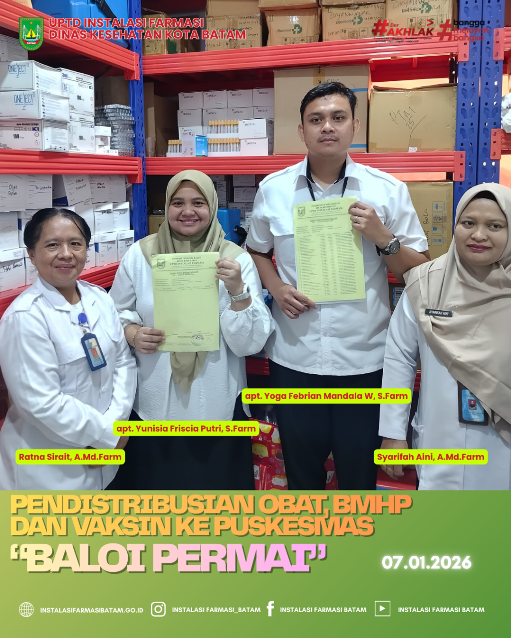 UPTD Instalasi Farmasi Dinas Kesehatan Kota Batam melakukan Pendistribusian Obat, Bahan Medis Habis Pakai (BMHP) dan Vaksin rutin ke Puskesmas Baloi Permai pada Rabu, 07 Januari 2026