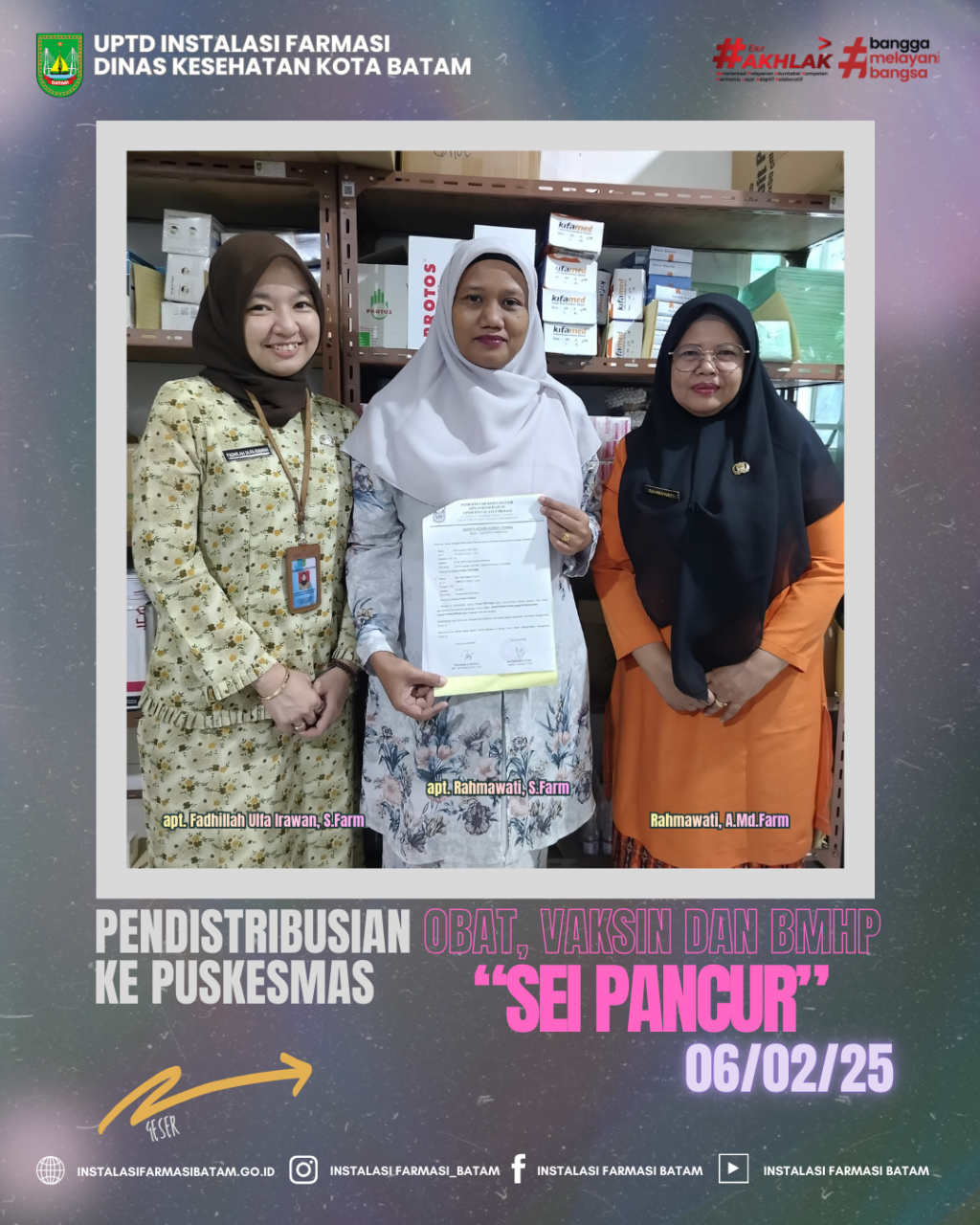 UPTD Instalasi Farmasi Dinas Kesehatan Kota Batam melakukan Pendistribusian Obat, Bahan Medis Habis Pakai (BMHP) dan Vaksin rutin ke Puskesmas Sei Pancur pada Jum’at, 06 Februari 2026