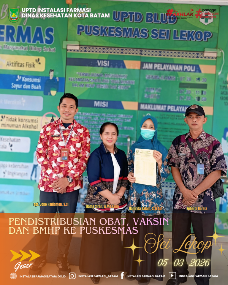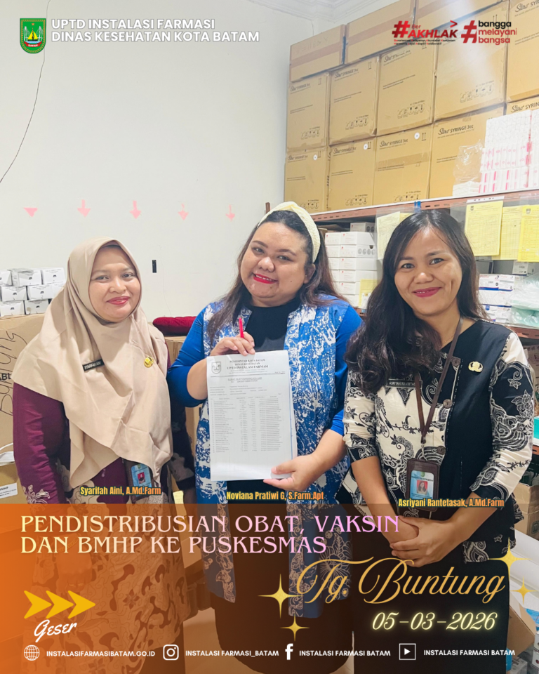 Pendistribusian Obat, BMHP dan Vaksin ini bertujuan untuk menjamin ketersediaan Obat, BMHP dan Vaksin untuk menunjang pelayanan kesehatan dasar kepada...