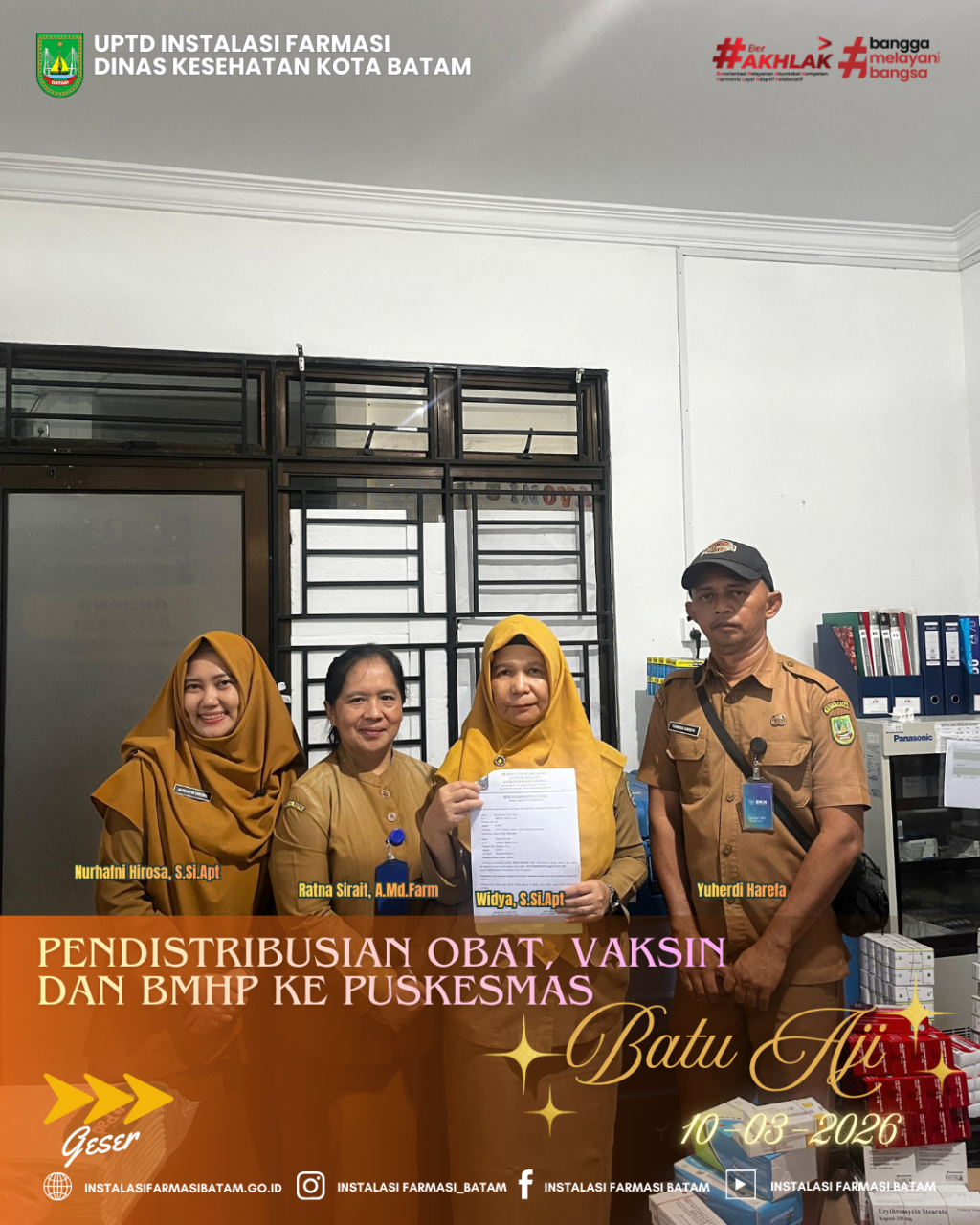 UPTD Instalasi Farmasi Dinas Kesehatan Kota Batam melakukan Pendistribusian Obat, Bahan Medis Habis Pakai (BMHP) dan Vaksin rutin ke Puskesmas Batu Aji pada Selasa, 10 Maret 2026