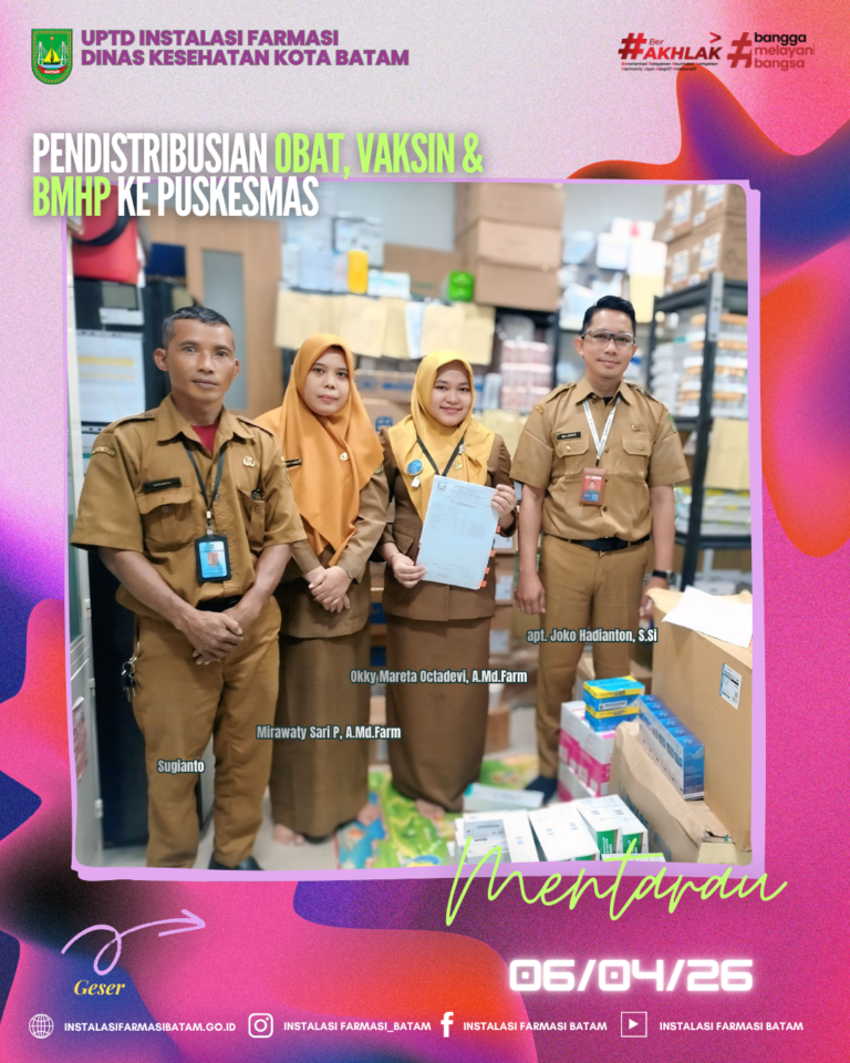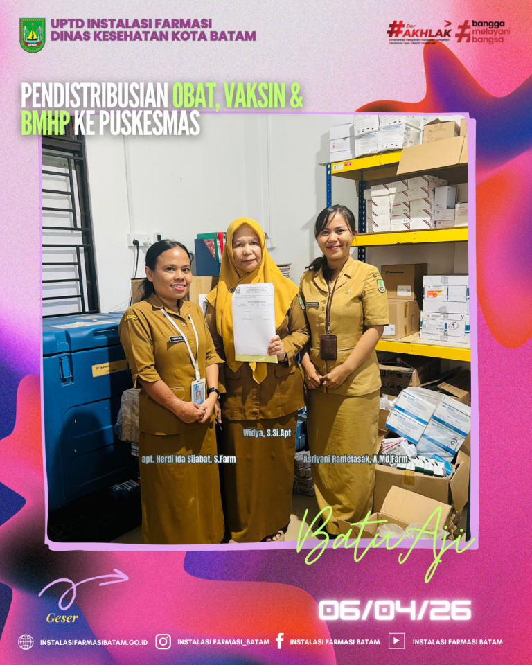 Pendistribusian Obat, BMHP dan Vaksin ini bertujuan untuk menjamin ketersediaan Obat, BMHP dan Vaksin untuk menunjang pelayanan kesehatan dasar kepada...
