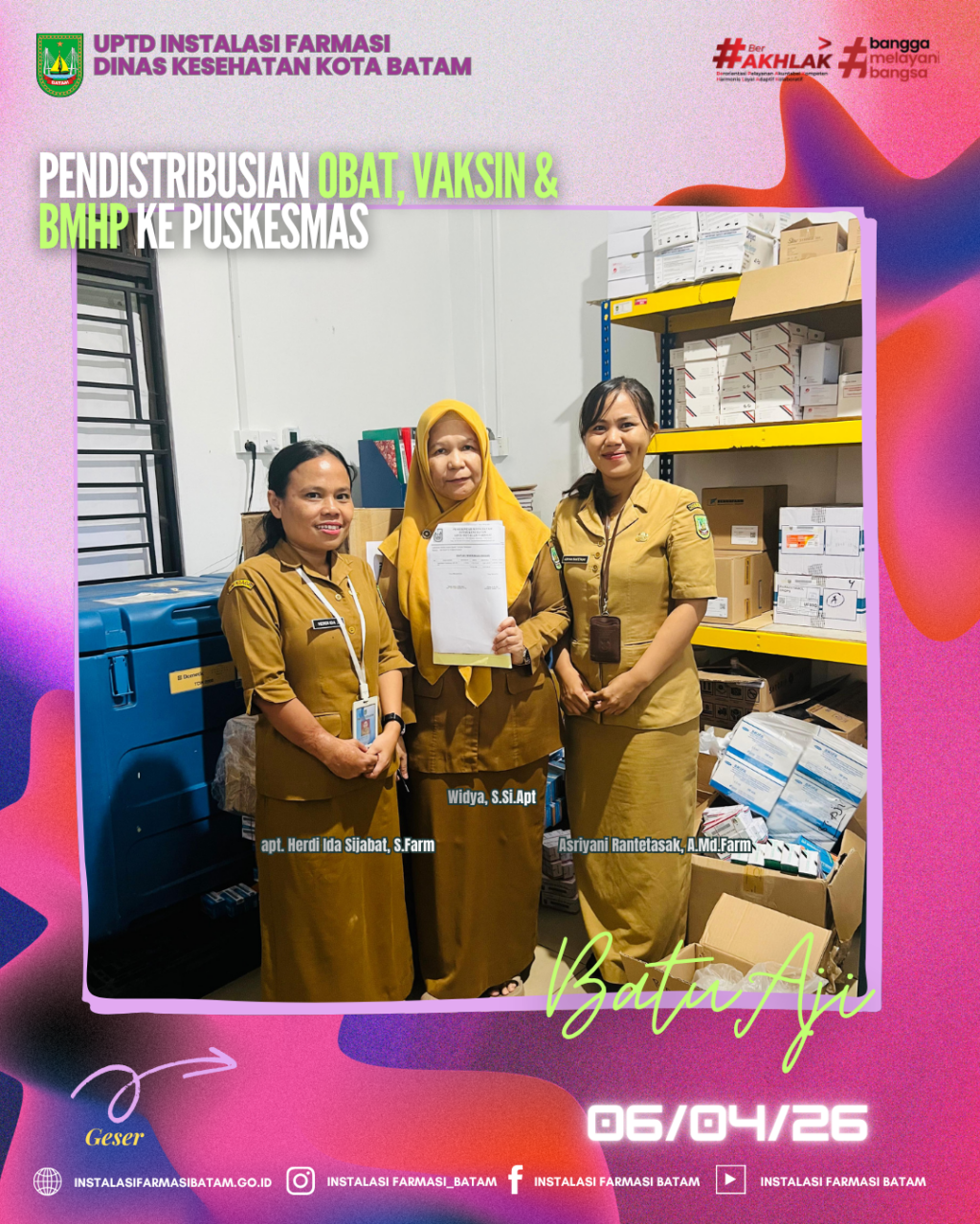 UPTD Instalasi Farmasi Dinas Kesehatan Kota Batam melakukan Pendistribusian Obat, Bahan Medis Habis Pakai (BMHP) dan Vaksin rutin ke Puskesmas Batu Aji pada Senin, 06 April 2026